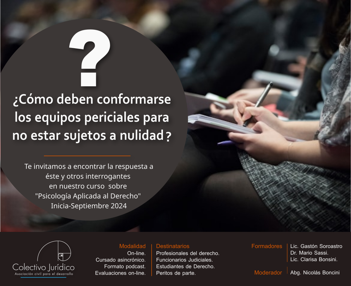 El recorrido formativo da respuesta a los interrogantes más frecuentes que se plantean sobre el alcance y la incumbencia de la ciencia psicológica en materia judicial. Desde cómo conformar un equipo multidisciplinario para evitar su nulidad, hasta qué niveles de certeza pueden aportar las técnicas psico-diagnósticas en el proceso probatorio; el contenido propuesto aborda numerosos planteamientos jurídicos de tipo procedimental, técnico y conceptual.